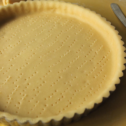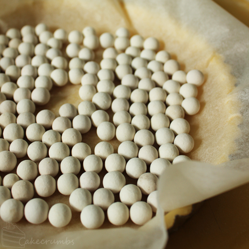 The dough needs to be worked really gently to not develop the gluten in the flour too much. You want it to just come together, then leave it be. This dough doesn’t need to rest in between stages, so you can whack it straight into the tart case. It has to be blind baked, which gave me a use to get out my sadly neglected ceramic pie weights. They’re really cheap and you can find them in just about any supermarket or homeware store, but if you can’t something like rice works just as well.