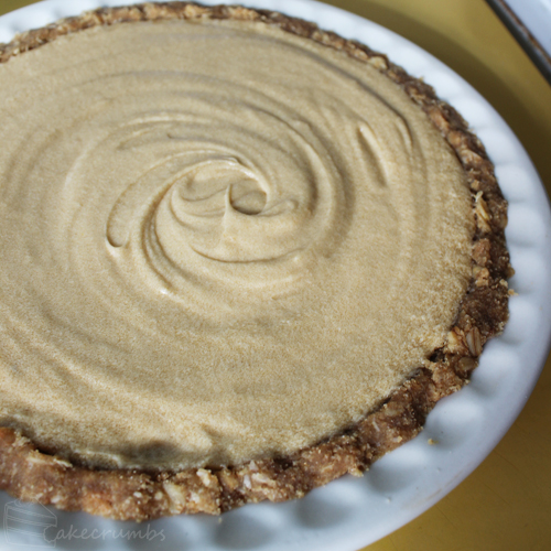 Once it’s baked and cooled, you crumble it up and make the pie base out of it. Quite similar to making a cheesecake base really.