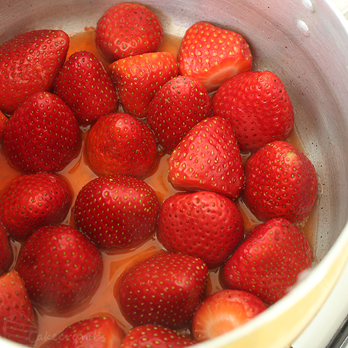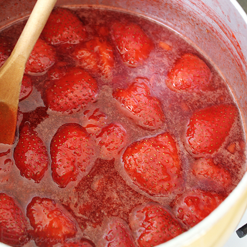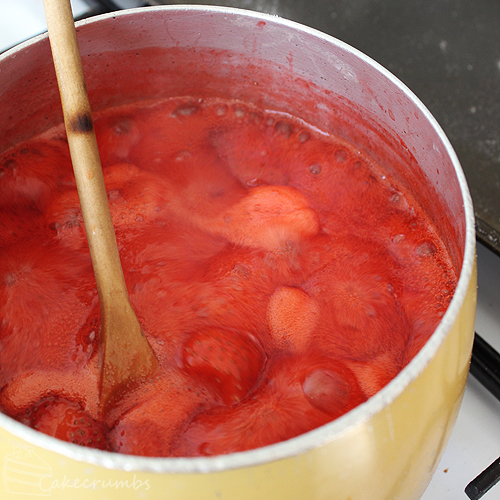 While the pastry is having a nap in the fridge, it’s a great time to begin the filling. To make the marmellata, you place the strawberries, lemon juice and witer in a pot and gently cook until the strawberries release all their juice and are soft to the touch. Then bring it up to a rolling boil and cook until set. Pretty simple stuff. If you don’t have the time to do it all in one day, you can make it in advance and just reheat it when you need it.