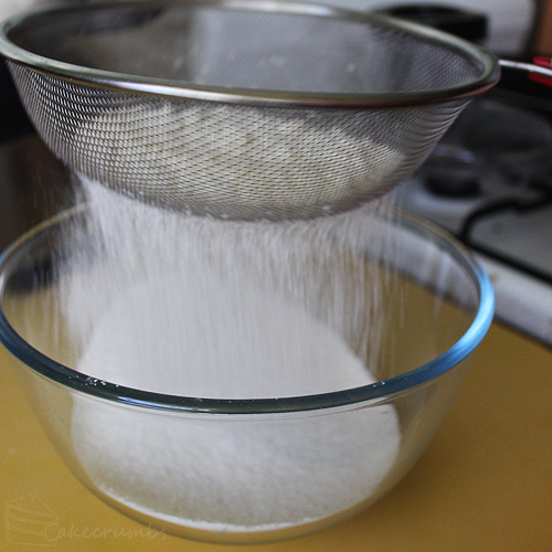 2. Sift almond meal and icing sugar together; sift mixture twice more, then set aside.