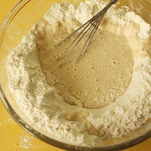 Add it, and the egg to your flour mixture and get ready for some steady arm work.