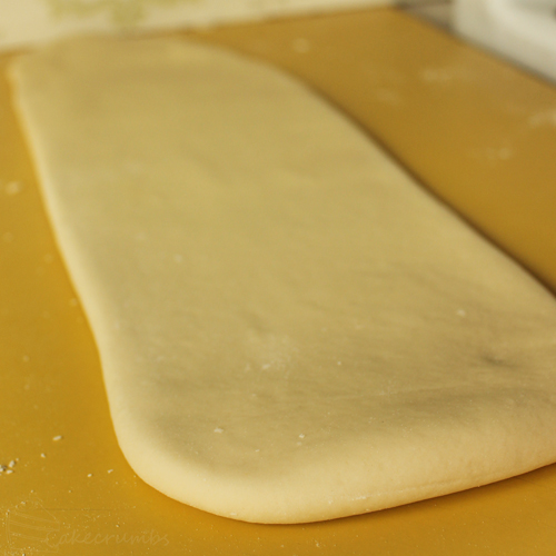 Roll out your dough one final time into an even larger rectangle, then you can begin rolling your croissants.