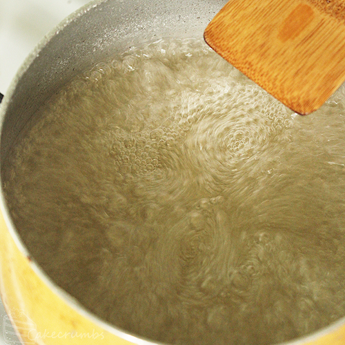 The musk sticks for the marshmallow are boiled down in a sugar syrup. While that’s cooking, you heat the invert sugar and add the gelatine.