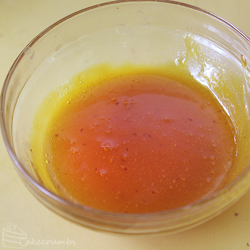 I used about 4 mandarins. I peeled the rind from them and removed all the pith and seeds from each segment. I processed them in a food processor, then strained the juice through a fine mesh sieve to remove the pith. I added a tablespoon of caster sugar to the juice, then simmered it over low heat until it reduced down to a viscous enough looking concentrate. I could find no images of what the concentrate was supposed to look like, only those of external packaging, so I took a guess it how thick it needed to be. I figured the ganache needed to be set, so the concentrate shouldn’t be particularly runny at room temperature. Mine was almost set once it cooled.