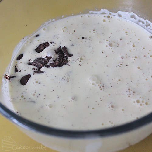 That mixture is then poured over the white chocolate and stirred through until the chocolate melts.