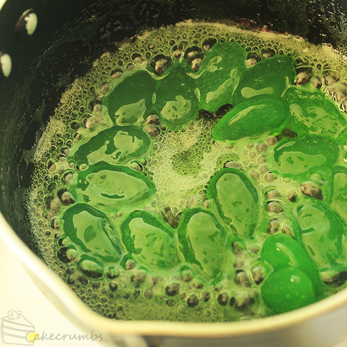 The first step of the buttercream involves making a mint paste by boiling down the leaf lollies and blending them. The result is so sticky and messy and wonderfully aromatic. There are so many processes with this cake that result in insanely sticky messes. The child half of me loved it, while the adult tried to not think about the cleaning up later.