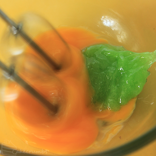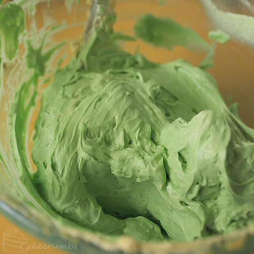 You now have a wonderful buttercream, but it doesn’t look very minty. here the recipe called for powdered food colouring. I assume gel paste will work just as well. You will also add in some eucalyptus oil, which serves to intensify the mint flavour that has started to get lost under all that butter. If you can’t find food-grade euc oil, you can use peppermint essence instead.