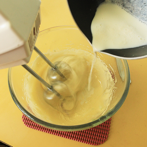 You’ll beat this custard into the butter, which needs to be at room temperature, until you have a soft and luxurious buttercream. Into that you fold a little meringue as well.