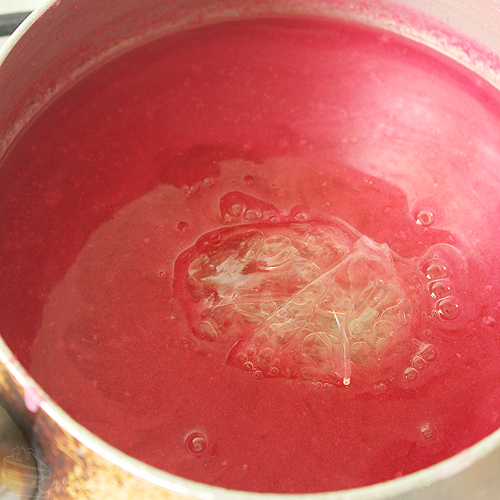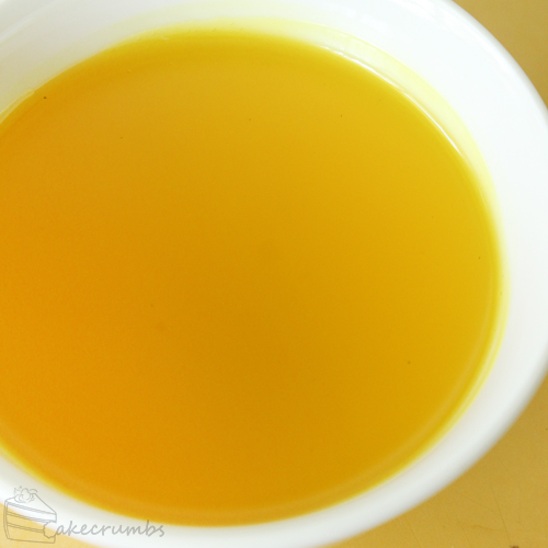 Next came the invert sugar, which is used for the musk-mallow layer. Invert sugar is a sugar syrup that contains fructose. It’s used in a lot of cheffy recipes due to its ability to retain moisture and lack of tendency to crystallize as other sugars do. It results in a nicer texture, and also works as a preservative, increasing the shelf life of your products. It’s really easy to make with the help of a thermometer and some patience. The quantity I made produces a lot more of that stuff than you’ll need, but I intend to use it again (in most desserts you can typically replace 10% of the sugar with invert sugar). It’s also a lot easier to control the temperature of larger batches of syrup, but feel free to half or quarter the recipe if you wish. You can substitute invert sugar with another sugar syrup, like corn syrup or honey, but I assume any substitution will affect the taste.
