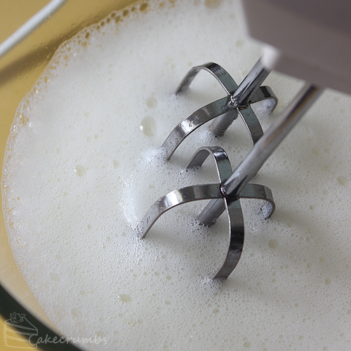 Getting the meringue right is crucial, but simple if you know what to look for. Begin by getting your egg whites nice and frothy.