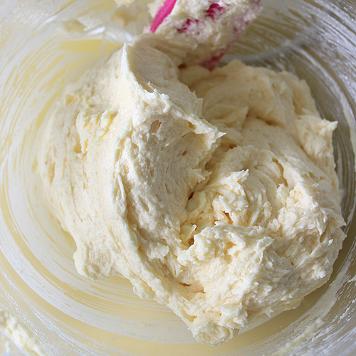 While I waited for them I started on the buttercream. Buttercream is really simple. Start out with room temperature butter and beat it until it’s smooth and creamy. Then you work in the icing sugar.