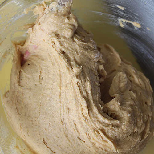 Fold the flour mixture and pumpkin puree, alternatively, a third at a time into the butter mixture until just combined.
