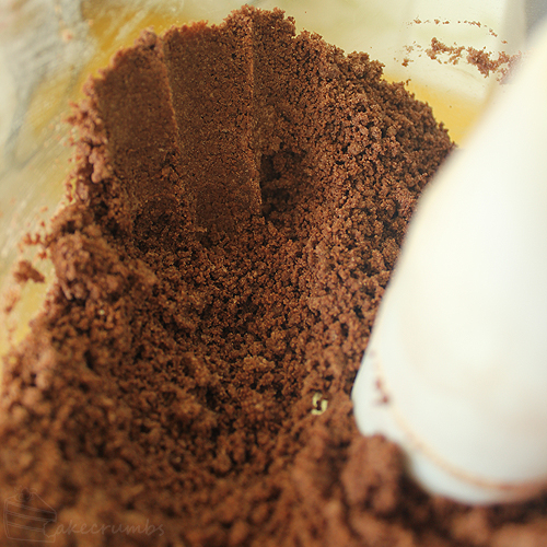 1. Place flour, sugar, cocoa powder and soy spread (or butter) in a food processor; gradually pulse until mixture resembles fine breadcrumbs.