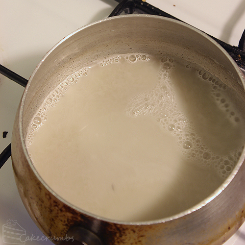 3. Once the milk has boiled, pour it over the chocolate and stir until chocolate melts and is well combined.