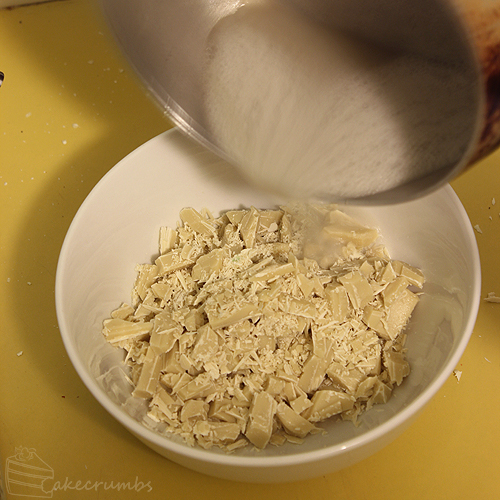 1. Chop up the white chocolate and set it aside in a bowl. If using coconut cream, pour the topmost layer of coconut cream into a bowl making sure the bottom layer of coconut water does not mix in. If too much of the water mixes with the cream it won’t whip properly. You can keep the coconut water for a smoothie.