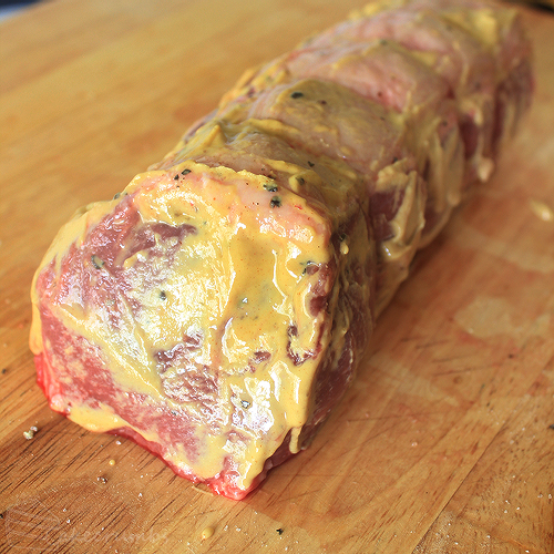 There’s lots of ways to herb crust a roast. One of my go-to [read: lazy] methods is to cover the meat in dijon mustard, then cover that with whichever of the herbs in my garden looks like it could do with a prune.