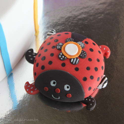 Next were all the toy replicas. First was this lil lady bug soft toy. It was made out of patterned material so I opted to paint the patterns onto the fondant.