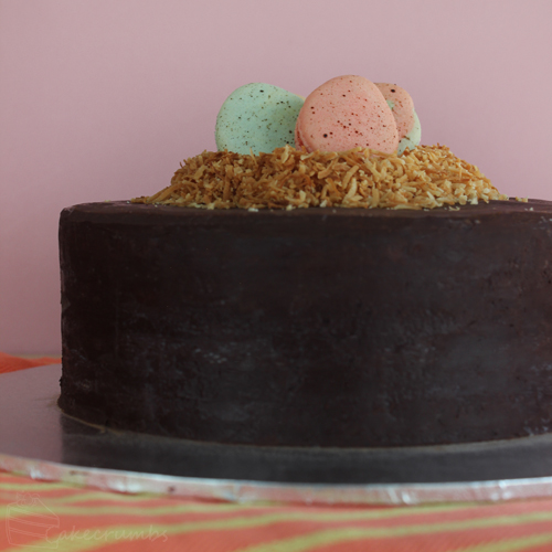 To keep in with the Easter theme, I made a nest from shredded coconut I quickly roasted in the oven. Then I topped them with the speckled egg macarons from last week. The macs, quite obviously, aren’t vegan — that’s something I’m yet to attempt to figure out.