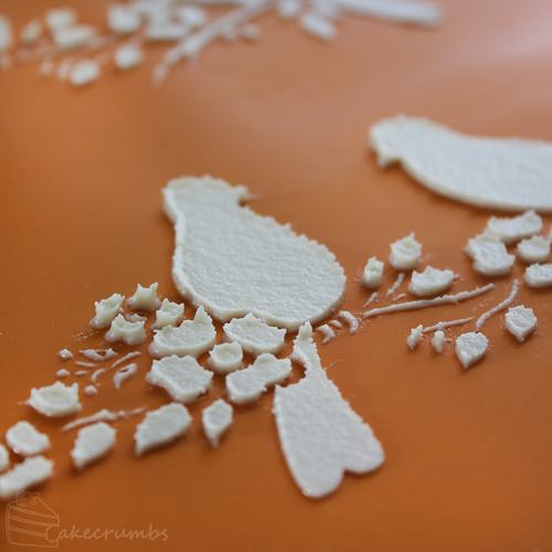 In all the other instances I’ve used the decor paste it’s appeared externally over a very small area. In the larger sections of these birds, the sponge ended up becoming slightly concave. This might just be the effect of having a large area of the decor paste, I’d have to experiment to find out, but I really loved the extra dimension it gave to the birds.
