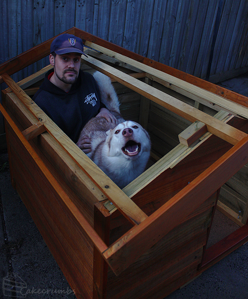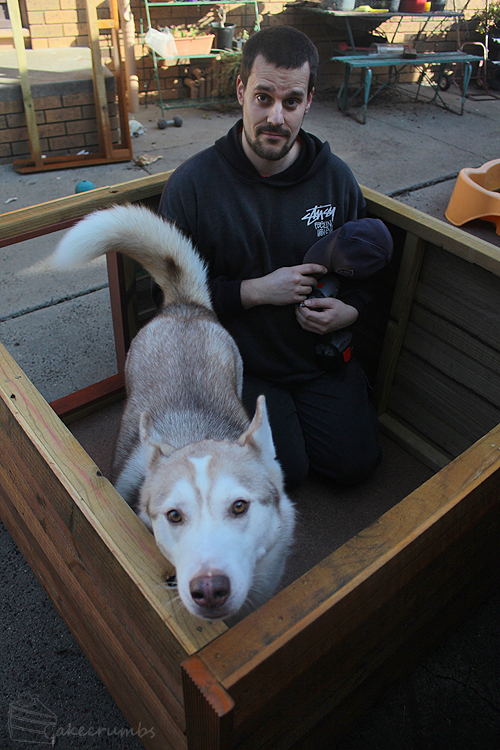 Tobias decided to ‘help’ us build it. When he wasn’t pulling funny faces he was taking advantage of the fact that we were spending our day at face-height to him and licking us on the face when we least expected it. Or offering us his butt for booty scratches.