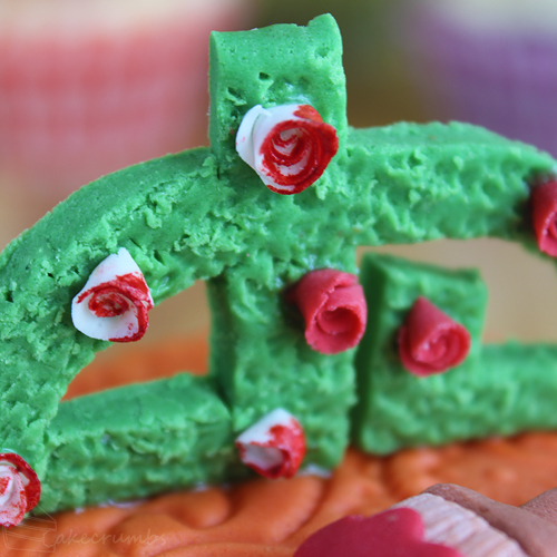 These were the tiniest roses I’ve ever made. Usually I make them petal by petal, but I had to settle for scroll roses for this one.