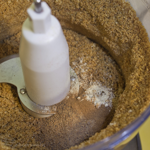 All good cheesecakes begin with an incredible crust. I wanted a bit of a honey type flavour in the crust, so I chose butternut snap biscuits. To that I added some cinnamon, nutmeg and ginger and processed it to make the base.