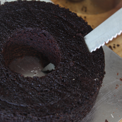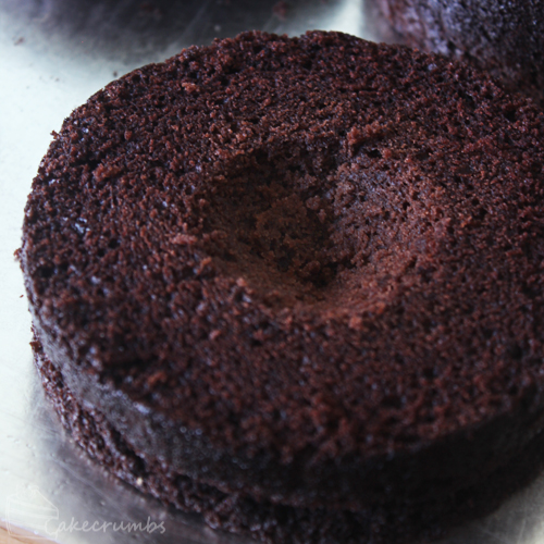 Half of this cake provided enough cake crumbs to fill my little cake. I saved the other half for general noms. The ganache recipe provided here is enough for turning the whole cake into cake balls, so adjust accordingly.
