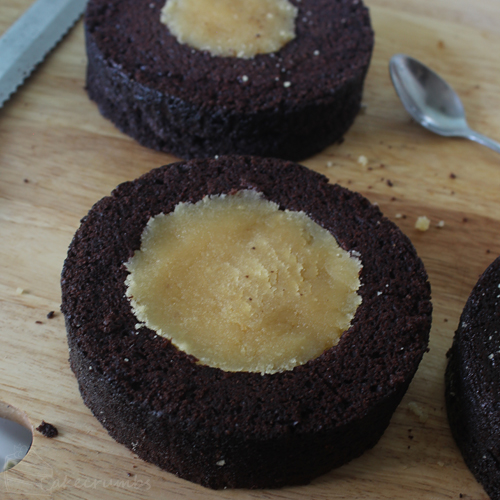 Once all your layers are cut you can then fill them with the cake crumbs mixture.