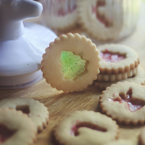 I’ve done stained glass cookies before and wanted to try something different, but I couldn’t resist just making a couple of green Christmas trees. I used a couple of lollipops I had. Any boiled sugar lolly will work.