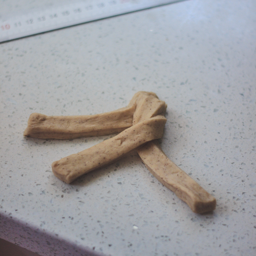 Give the dough a good pinch at both ends because it does like to spring apart when cooking.