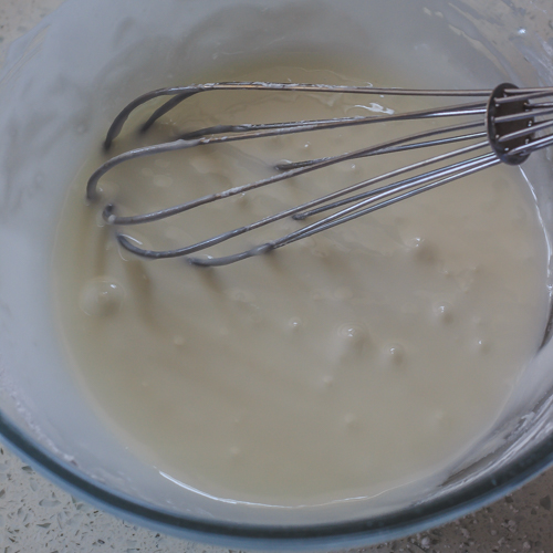 - In a medium bowl, lightly whisk the egg whites. Whisk in the icing sugar a little at a time to form a paste/icing.