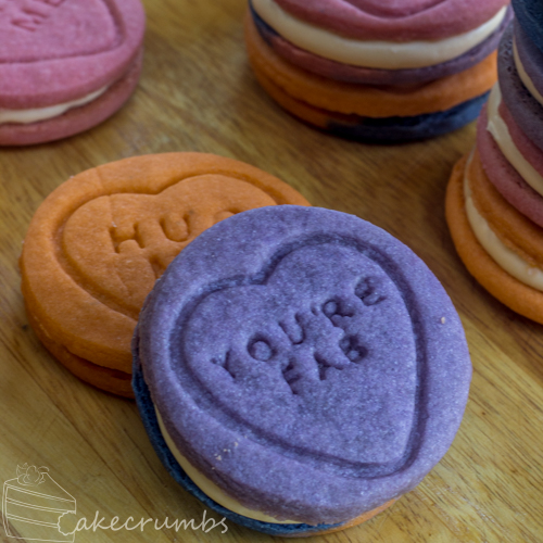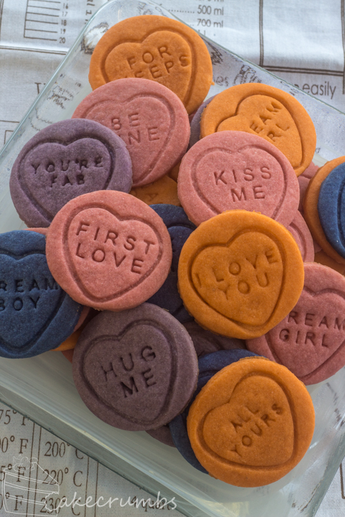 When I was a kid one of the great joys of school was heading to the canteen at lunchtime to buy a packet of lollies. I don’t eat many, if any, lollies these days, but I have such an emotional attachment to those I had as a kid. There’s almost more nostalgia-factor attached to these than anything else. One of the most popular lollies were the sherbet-ty lollies called Love Hearts. There’s a few variations of this lolly. In some places they’re called Sweet Hearts, in others they’re called Conversation Hearts. But we all recognise these little heart-shaped lollies with their corny little lovey sayings emblazoned on them. What better time to recreate them in cookie form than for a Valentine’s Day treat?
