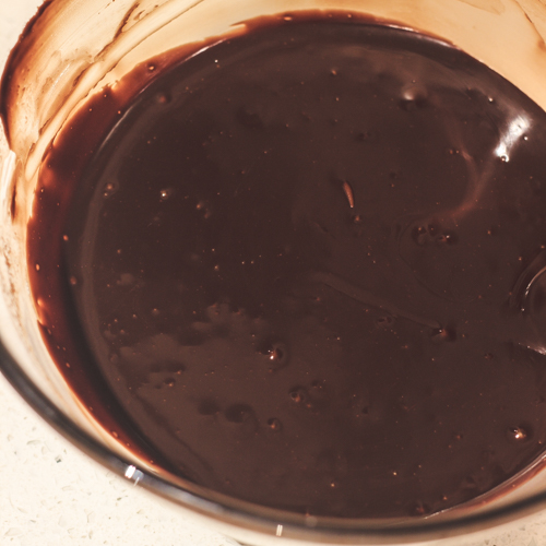2. Pour hot cream over chocolate; allow to sit for 30 seconds, or until chocolate begins to melt. Stir until smooth then allow to cool to room temperature.