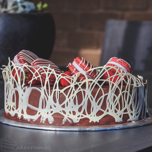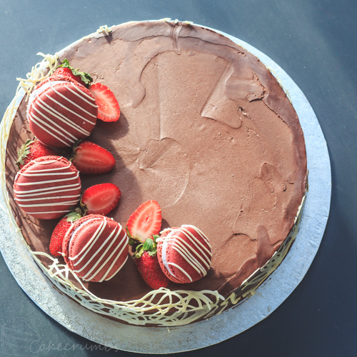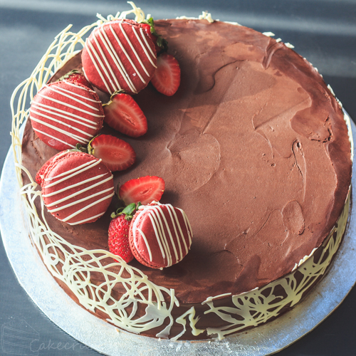I added a bunch of fruity tea filled macarons I made to the top with a couple of strawberries and that was it for this simple cake.