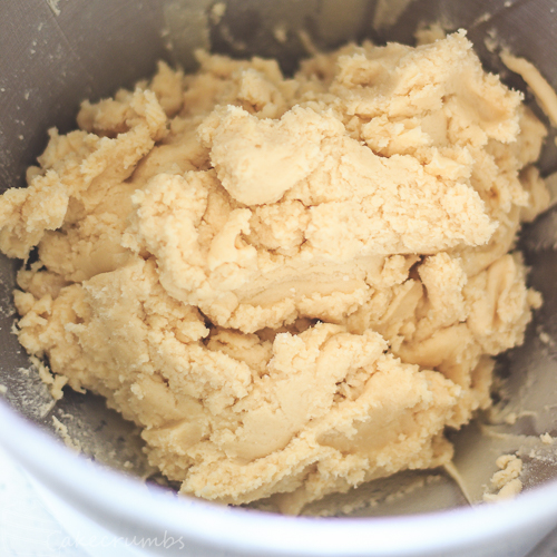 My recipe starts with the usual: creaming the butter and sugar together, then folding in the flour. You don’t want to knead or overwork the dough as you’ll develop too much gluten in it.