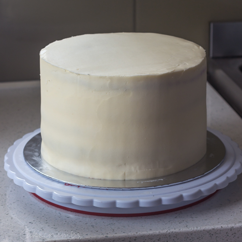 I thought this would be a quick little process, but this took several hours. I spent most of the afternoon cutting the squares, then into the early hours of the morning applying them to the cake.