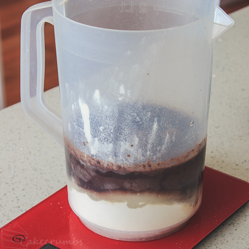 For this batch of cupcakes I turned to my favourite chocolate cake recipe. Not only is it the most decadent and moist chocolate cupcake, its ridiculously easy. The the point that these days I just shove all the ingredients straight into a jug and mix it there.