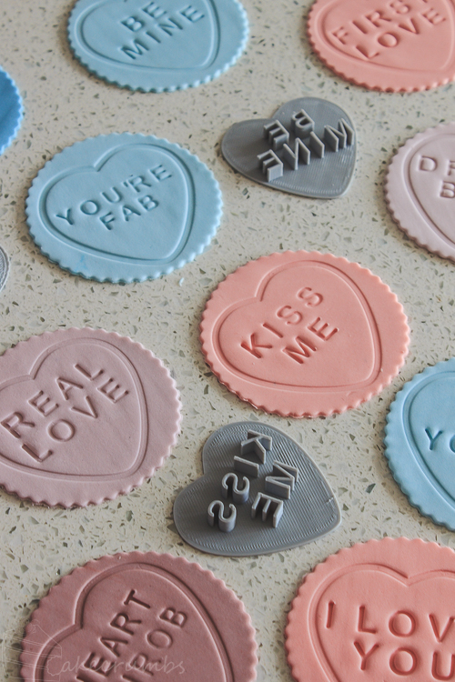 It’s nearly that time of year again. Now, Cam and I don’t really celebrate Valentine’s, especially because our anniversary is 2 days later. But I do love the excuse to bake to a theme. Last year I made a set of cookie embossers in the style of Love Hearts, known elsewhere as Sweet Hearts or Conversation Hearts. The embossers are still available for purchase here.